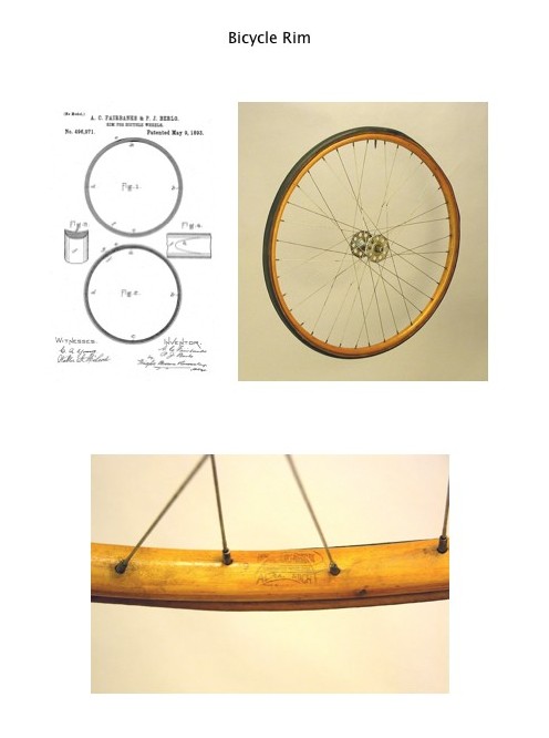 | May 9, 1893; Patent No.496971-laminated bicycle rim similar to multilayer banjo rim | ||