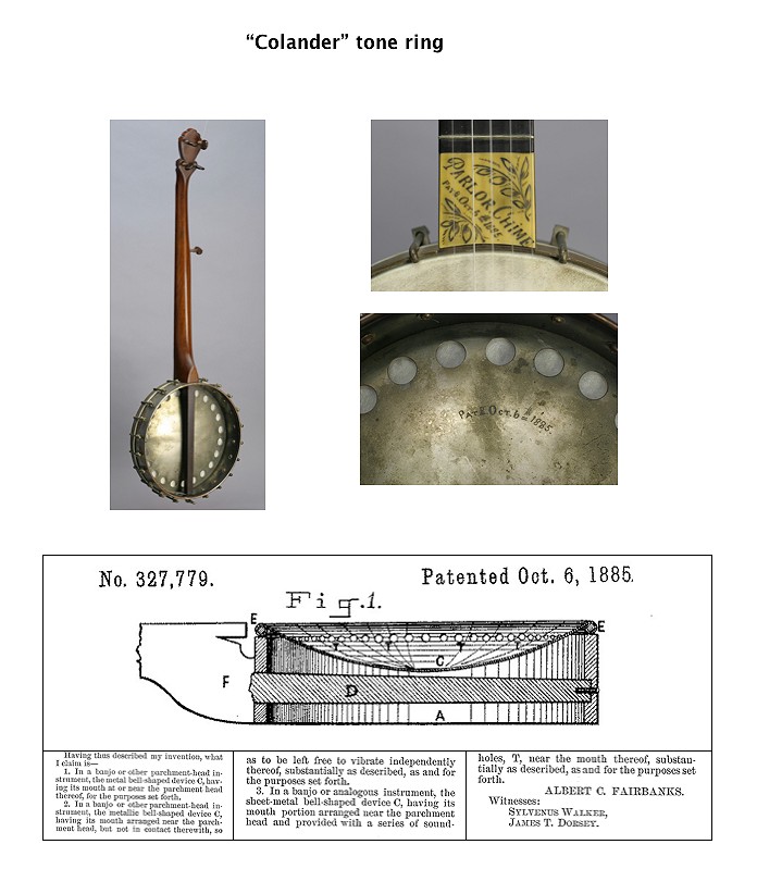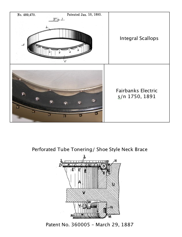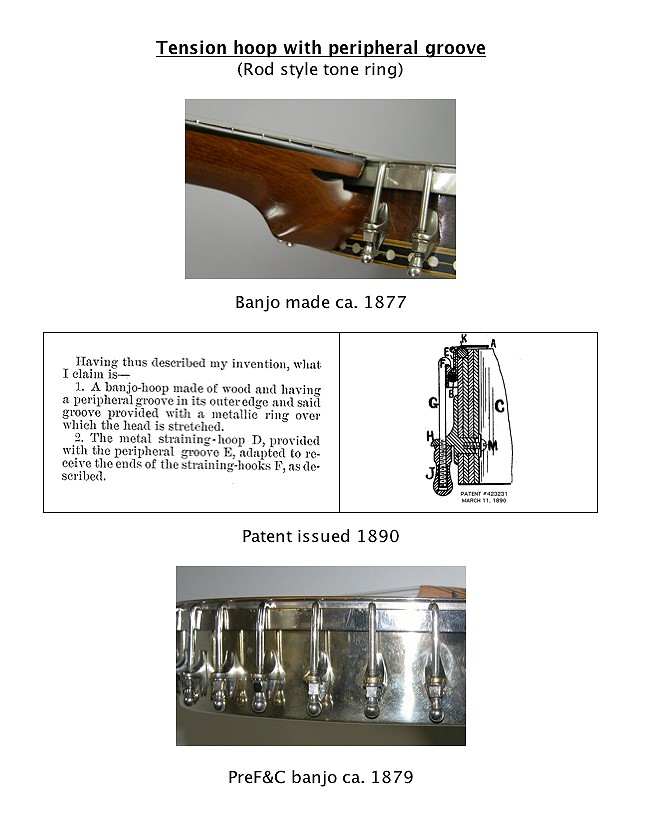 | March 11, 1890; Patent No.423,231-metal rod tone ring, grooved tension hoop | ||