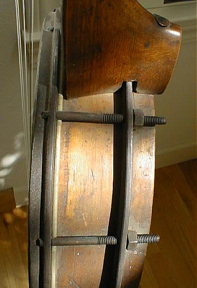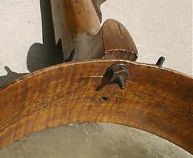 The recent boxwood pegs were fitted to the banjo without altering the neck in any way.